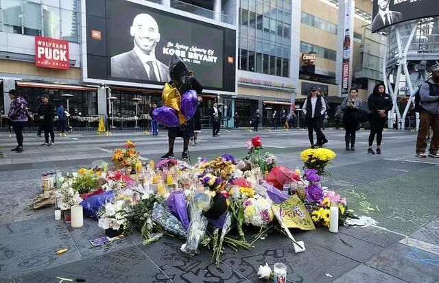 ▲人们用鲜花纪念科比