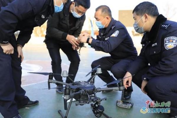 庐山市公安局副政委程峰带领技术人员在对无人机进行改装(韩俊烜 摄)