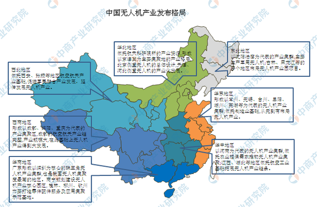 我国无人机企业分布广泛,当前,华南和华东无人机产业发展较为迅猛,集聚企业最多。其中,广东形成以深圳为核心的珠三角无人机产业集群,也是我国无人机集聚度最高的地区。华东地区形成以常州、无锡、台州、阜阳、湖州、芜湖等为代表的无人机产业集群,依托制造业基础,从无到有布局无人机产业。