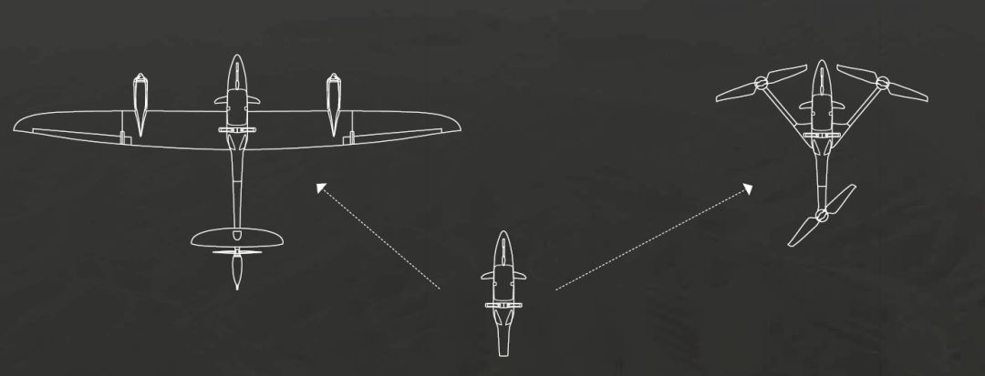 这款“二合一”无人机全重不足6千克,在倾转旋翼模式下名为“矢量”(Vector),翼展2.8米,2个倾转旋翼分别置于主机翼左右两侧,另外一个倾转旋翼位于尾翼上。该模式下,无人机有着相对更快的飞行速度(巡航速度为53-72千米/时),续航时间为2个小时。