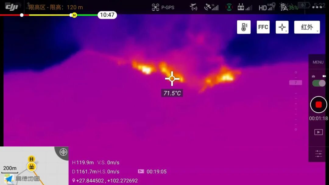 31日下午西昌泸山山火复燃,火势蔓延迅速,情况危急!我司无人机应急救援队再次出动,利用大疆无人机先进的探测技术,迅速确认着火点,并实时将火场画面传回指挥中心大屏幕,御2行业版红外双光镜头能在浓烟中快速判断火点,及时了解火情蔓延趋势,无人机的高效作业得到了在场人员的一致肯定。