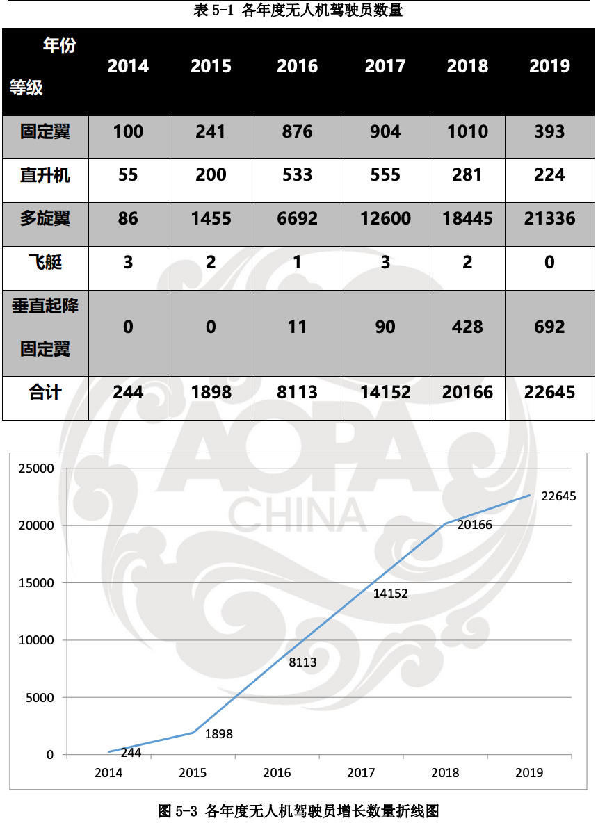 持证总数67218人:2019年中国 AOPA 民用无人机驾驶员报告