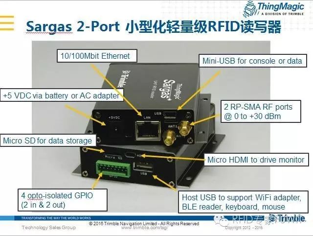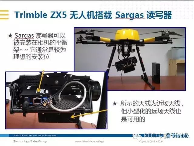 在演讲最后,Daniel展示了Trimble基于市场的发展需要及自身的先进技术,研发推出的无人机解决方案—ZX5和ThingMagic针对无人机应用退出的Sargas读写器。
