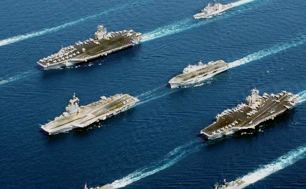图为美国及其盟友航母编队