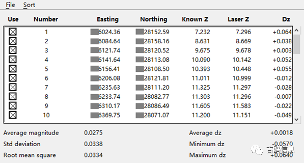 利用客户提供的40个检查点对点云数据进行高程精度验证,整个数据精度经验证,高程精度中误差3.34cm,满足项目需求。