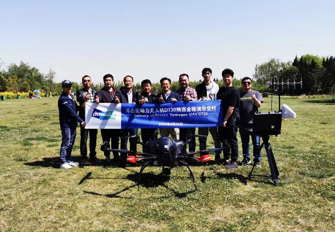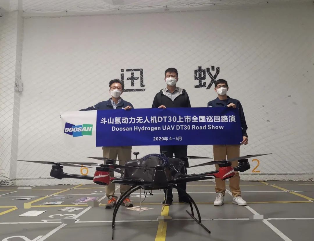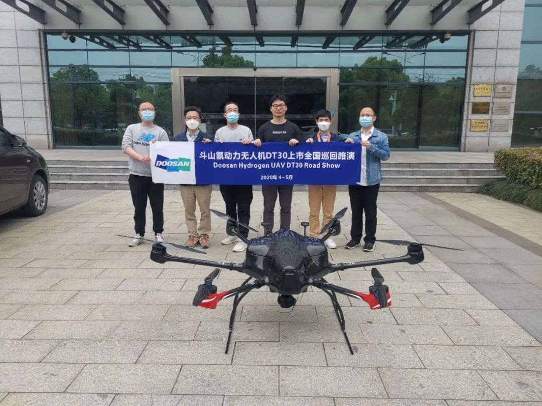 4月斗山与科卫泰合作开发全球首款内置一体型六旋翼氢动力无人机DT30成功上市后,斗山创新采用意向客户巡回路演的方式先后与浙江大华,杭州迅蚁,浙江天能,长兴县林业及环境保护局,江苏德宏电子,美团无人机,西安九天无限,西北工业大学等关联企事业单位及机关进行了燃料电池无人机应用的技术交流,并与陕西金骏氢链进行了设备交付及使用培训。