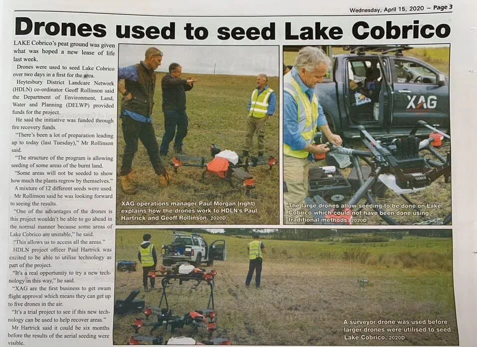 植被专家 Geoff Rollinson 在接受澳洲媒体《科布登提布海岸时报》(Cobden Timboon Coast Times)采访时表示,“科布里科湖区部分土地在山火烧毁后一直处于不稳定状态,很难用传统手段来人为干预。而无人机则能够代替工作人员,进入到所有区域的每一角落开展作业。若非如此,该项目的生态恢复工作将举步维艰。”