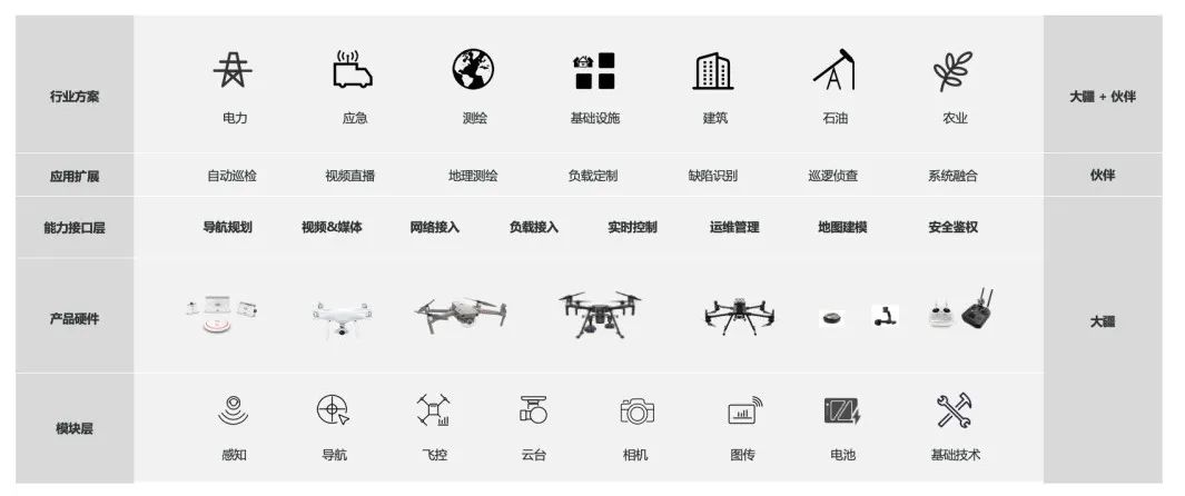 经过多年的发展,DJI 大疆行业应用始终秉承「技术开放,生态共赢」, 通过硬件开放、软件开源、SDK 培训、技术支持、渠道共享等丰富的赋能方式,帮助全球开发者开拓市场,打开行业想象力。