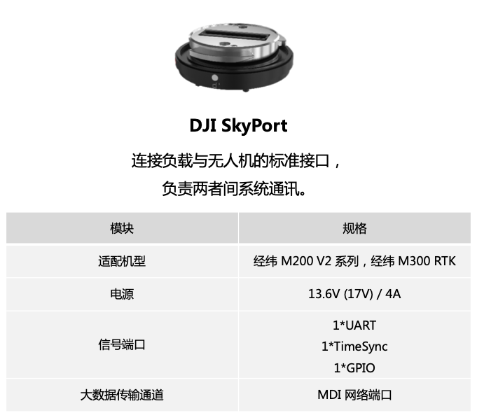DJI SkyPort V2:为 Payload SDK 开发者提供连接无人机和负载的转接环。