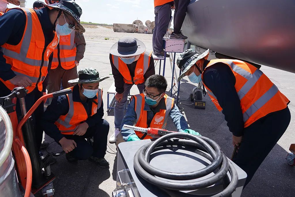 同时,团队结合飞行任务,在紧张作业的同时开展学员跟产跟研培训。通过观摩学习、跟随作业和现场讲解,地勤方面,从载荷安装、地面检查到飞行后系统维护保养,学员全方位学习,操作技能显著提高,基本能独立完成飞机上下电、燃油加注和着车等工作;空勤方面,有人机飞行员全程观摩飞控操作手起降全流程作业,掌握了飞控操作界面、地面联调联试流程和基本飞行操作,全体学员对无人机系统备飞流程初步理解掌握。