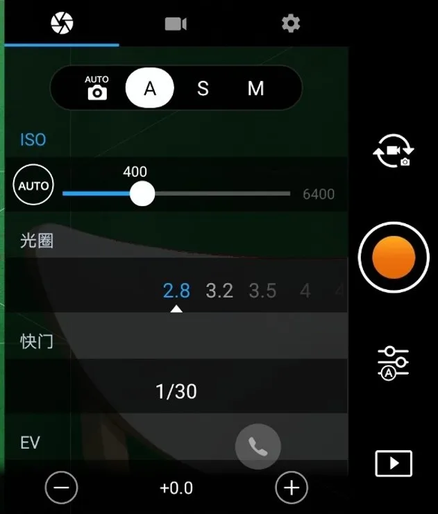 点击后 AUTO 不显示蓝色可手动调节ISO值