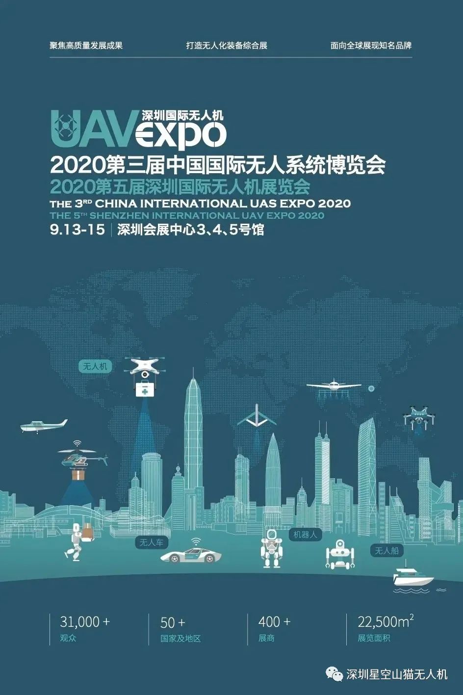 2020年9月13-15日,2020第四届世界无人机大会暨第五届深圳国际无人机展览会”在无人机之都——中国深圳正式举行。本届大会邀请了国内外诸多行业专家、学者、企业家参会。同期,围绕疫情防控、安全管理、行业应用、5G、人工智能、机器人、无人船等主题专场论坛。