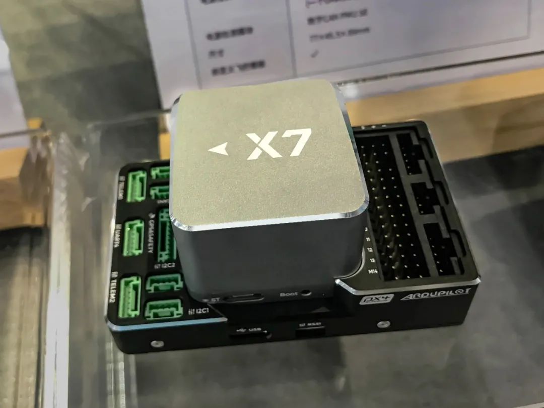 采用STM32H743处理器,拥有高达 480MHz 的处理速度、1M 运存和 2M 闪存,内置3组最新的Invensense + Bosch + TE系列组合的传感器和工业级 RM3100 罗盘,X7 Pro 还采用了车规级的 ADIS16470 传感器。X7、X7 Pro 采用分离式设计,支持定制飞控接口底板,可搭配CAN PDB一同使用。