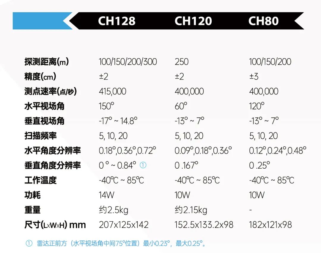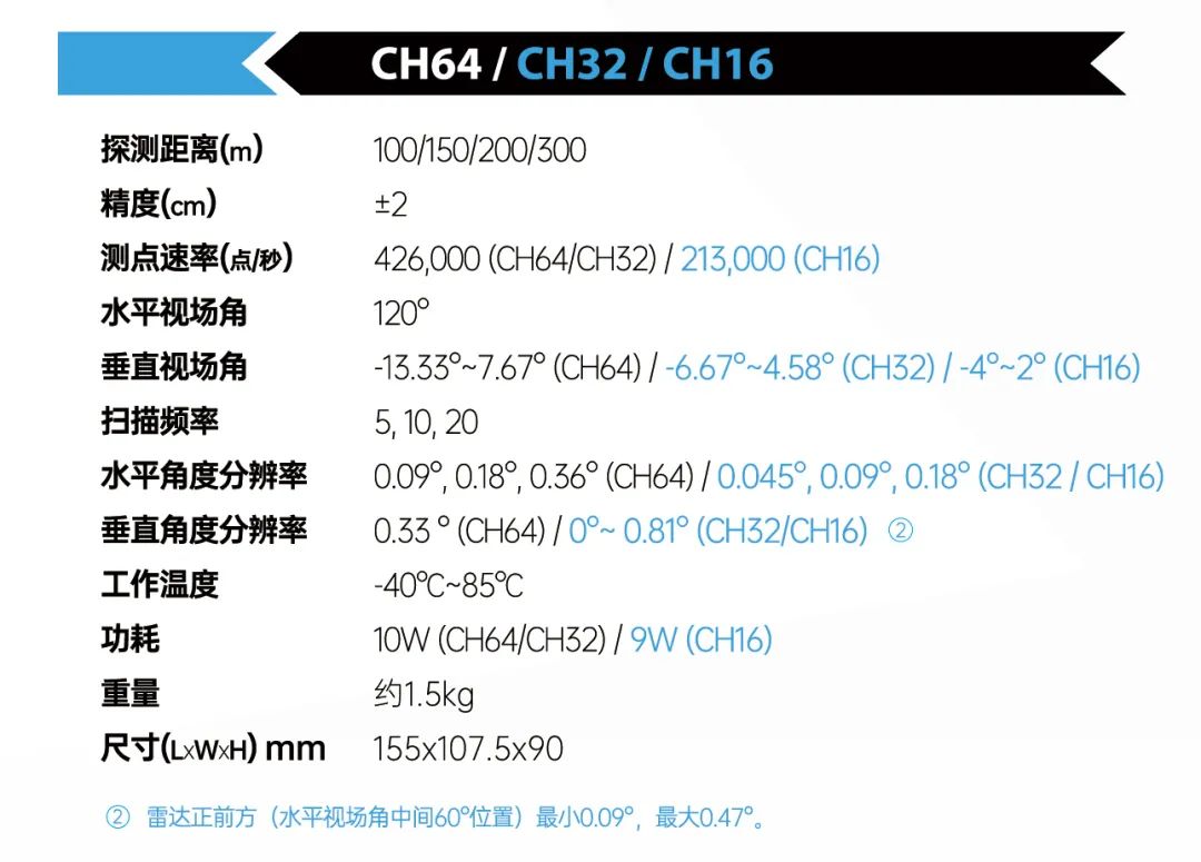 车规级CH系列混合固态激光雷达由镭神智能于2019上海车展上正式推出128线的型号,随后32线、16线也相继上市。