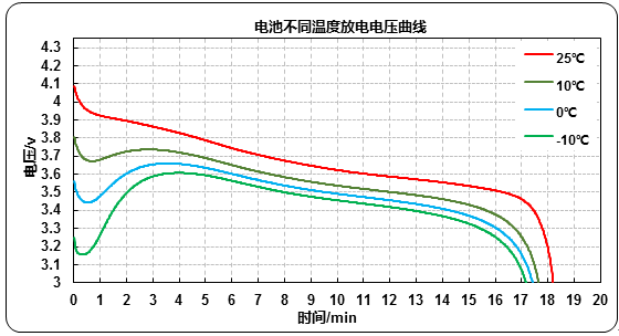 如图所示,电池温度越低,电池电压越低,飞行时长越短。