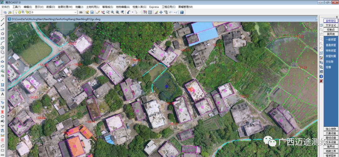 将正射影像(DOM)成果,导人CASS中(如果影像太大无法导入CASS中,需要采用ArcGIS对影像进行分幅裁剪),进行地形图绘制。