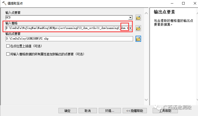 双击值提取至点,弹出对话框: