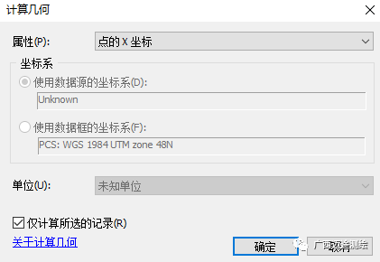 选中X字段,右击,点击计算几何,计算X坐标值。同理计算Y坐标值。