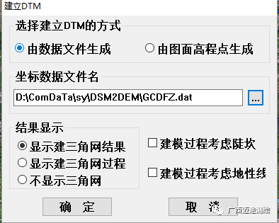 打开CASS,菜单栏---等高线---建立DTM,由数据文件生成,选择.dat文件,点击确定。