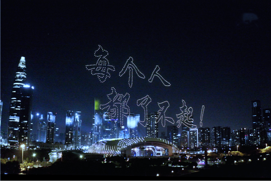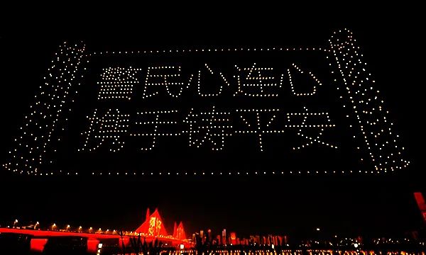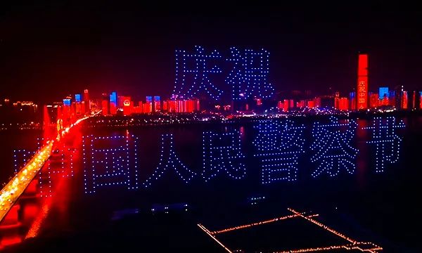 为庆祝第一个中国人民警察节,1月10日晚,在由中宣部和公安部主办,中央广播电视总台承办的“《忠诚铸伟业 · 阔步新征程》——2021中央广播电视总台‘心连心’艺术团赴公安机关慰问演出”中,大漠大用1000架无人机组成的无人机编队,配合晚会《英雄》节目,在武汉江滩进行无人机编队灯光表演,庆祝第一个中国人民警察节,致敬人民警察!