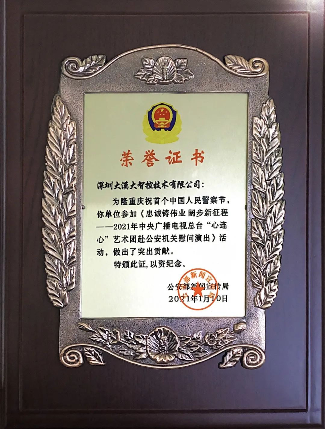 大漠大荣获公安部嘉奖