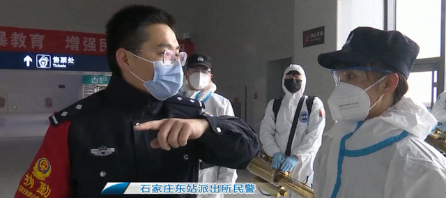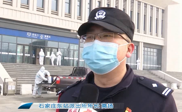 这里是石家庄东站的站前广场,为了更好更安全地迎接春运返乡的外地旅客回家,今天是由北京铁路公安局石家庄公安处石家庄东站派出所联合我们石家庄市蓝天救援队的队员们,一同对东站进行全范围的无死角的消杀。
