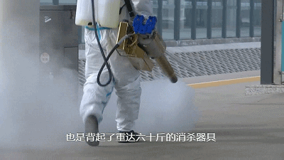 当然从中我们也看到,有很多女同志,也是背起了重大六十斤的消杀器具,一起进行消杀工作。