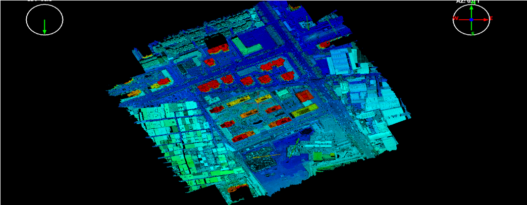 为了提高区域边界的数据效果,使用mdLiDAR3000 LR飞行时,飞行区域往外扩大了100m,实际飞行区域约为400m * 400m。飞行高度180m,重叠率60%;