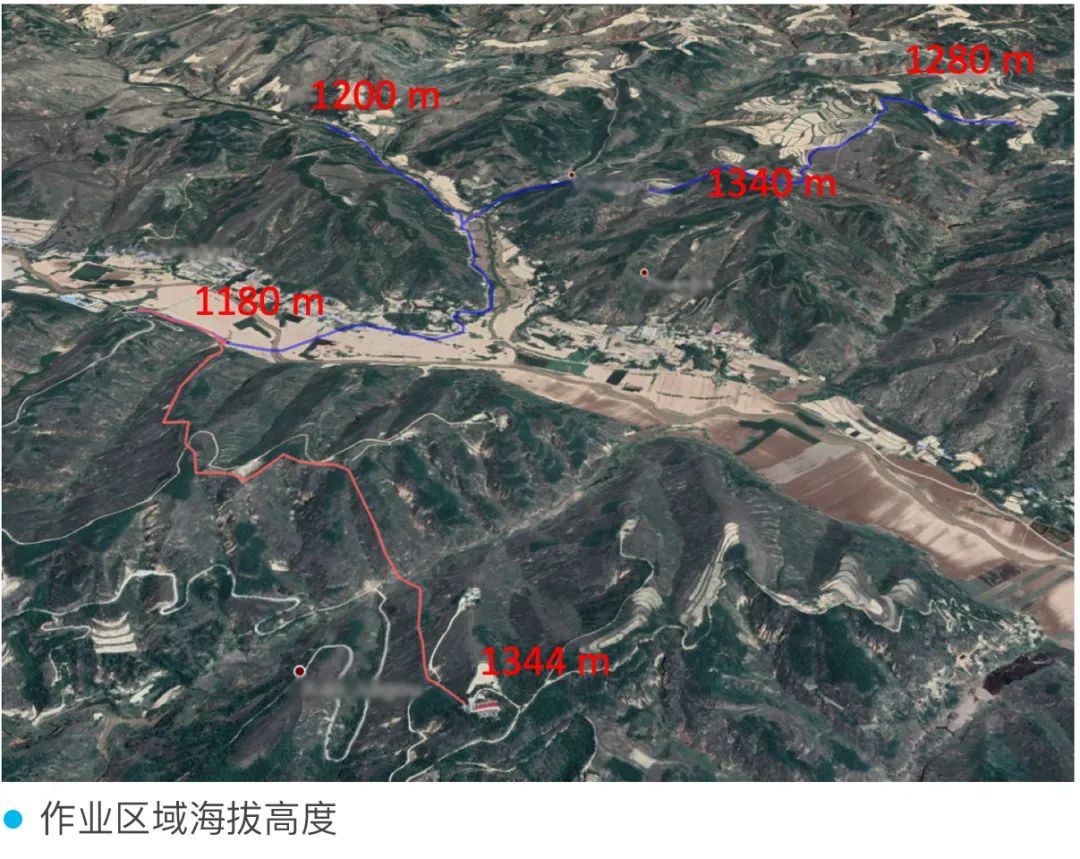 测区海拔较高(1200m-1300m),空气稀薄,且山区高空中易有强风,电机功率会比较大,电池续航会缩短;