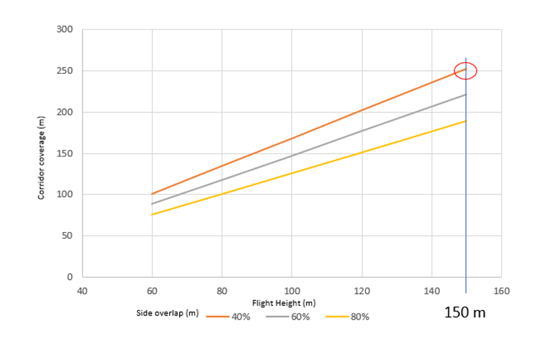 5. 重叠率:对于飞行高度150米、宽度250米的带状航带,mdMapper1000DG要求最低80%-40%的重叠率。
