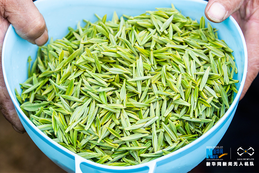 这是茶农新采的春茶。新华网发(甘昊旻 摄)