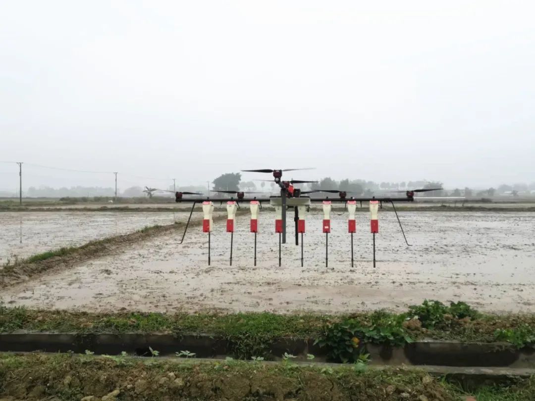 珠海羽人此次展示了公司旗下的明星产品——L20水稻精量直播无人机,与一般无人机无规律地撒播水稻不同的是,这款无人机能实现精准、定量、成行的水稻空中直播,行距和用种量均能根据农户需求灵活调节,5分钟可以直播4亩地。这种高效的播种方式,将大大帮助农户抢抓春耕备耕最佳时机,而且节省不少了用工成本呢!