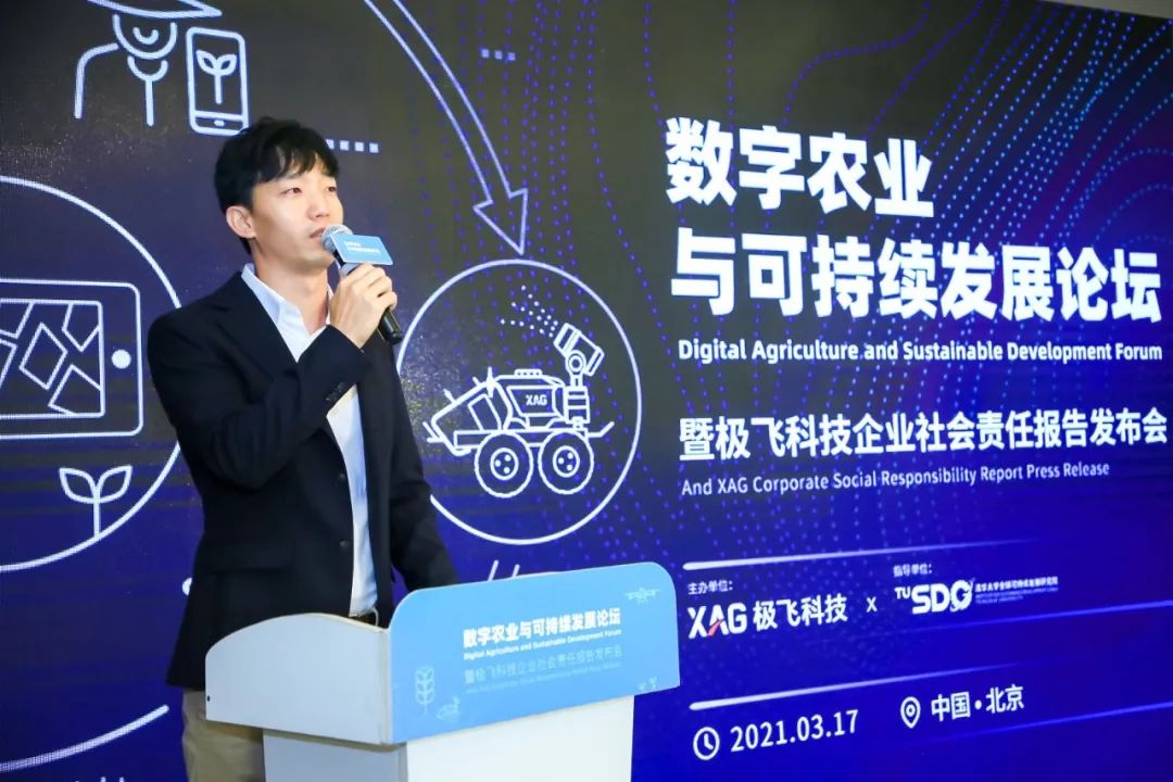 在报告发布环节,极飞科技联合创始人龚槚钦对《极飞科技企业社会责任报告 2020》(以下简称“报告”)进行了深度解读,分享极飞用责任担当推进数字农业落地的故事。报告创新性地以“极”字为主线,串联起“极致创新”、“极聚力量”、“极飞卫士”、“极时行动”、“极荟价值”五大篇章,阐述了极飞从引领农业产业变革、推动农村社区发展、减缓气候变化、应对疫情危机等多个方面落实联合国可持续发展目标(SDGs)的相关举措和关键成果。