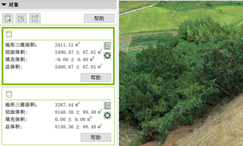 工作人员首先使用检查点来验证成果精度,通过比较检查点的原始位置和计算位置,得到平面误差为1-6厘米,高程误差为1-4厘米,完全可以满足业主在精度上的需求。DSM(数字地表模型)代表了地面的起伏情况,是Pix4Dmapper中计算土方量的基础。软件会根据用户自定义的起算面,自动算出起算面上方和下方的挖方量和填方量。在本项目中,业主提供了18个起算面,把这些起算面导入到Pix4Dmapper中,按“计算”按键,几秒钟内就能得到某一地块的填挖方量。