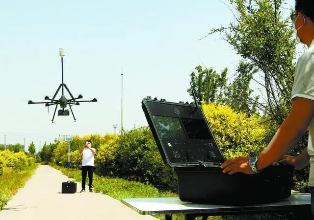 “为了学习这架无人机操作,我们专门去南京进行培训。这架无人机可在各个领域对气象数据及大气进行实时监测,机动灵活,应急使用,可对垂直不同高度的大气层进行监测,可以在1500米高空作业,一次作业时间30分钟,其中包括对大气颗粒物浓度、大气成分、气压、风向风速、温度、空气湿度等进行监测,从而更准确地发布实时预报”工作人员告诉记者。
