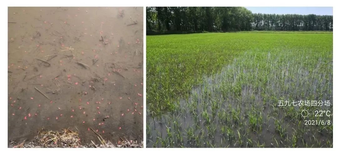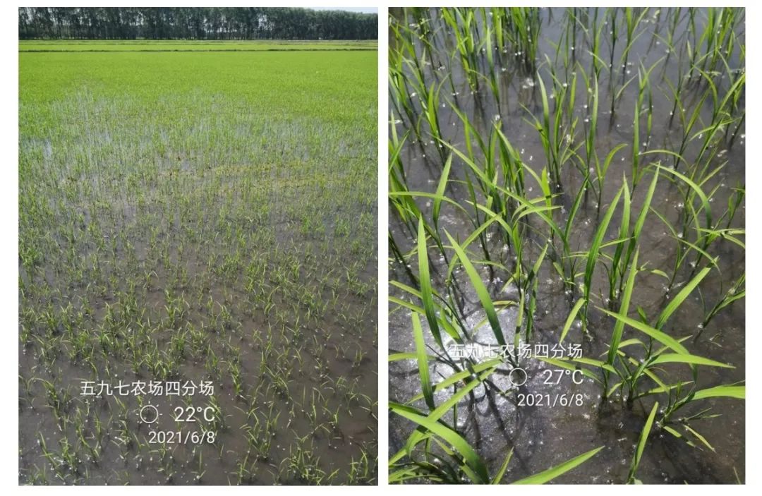 5 月下旬,黑龙江地区迎来了一年一季的水稻播种作业。在双鸭山宝清县的五九七农场,放眼望去,60 万亩的水稻田都开始慢慢冒绿尖。农场四分场的种植户任维东今年第一次尝试使用极飞 P80 农业无人机进行水稻漫撒直播。半个月后,地里水稻苗长起来了。从规整匀密的稻田可以看出,这次 P80 的撒播效果很不错。
