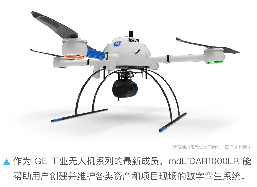此外,GE 工业无人机系列为 Microdrones 现有产品组合新添了一款出色产品:mdLiDAR1000LR 测量套装。它可以帮助专业人员从更远的测程收集数据(在陡峭或危险地形的作业中尤为实用),同时每次飞行覆盖更大区域。