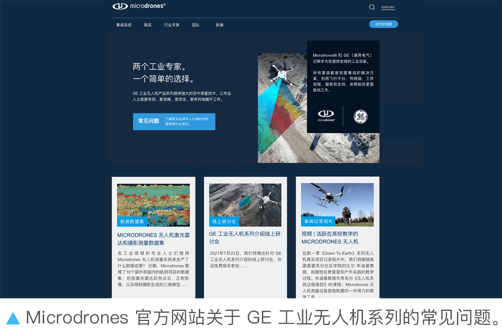 进入 Microdrones 官方网站,查看关于 GE 工业无人机系列的常见问题:https://www.microdrones.cn/ge_industrial_drone_line
