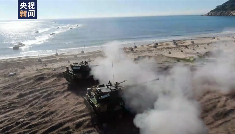 再把目光聚焦回这次演练,演兵场上气温超40℃,有了无人机蜂群的打下的基础,后续的十几辆05式两栖车族势如破竹,很快冲上滩头……各兵种密切配合破除“敌”工事,快速夺占演练目标119高地,圆满完成任务,有效检验了这支两栖合成部队渡海登陆作战能力。