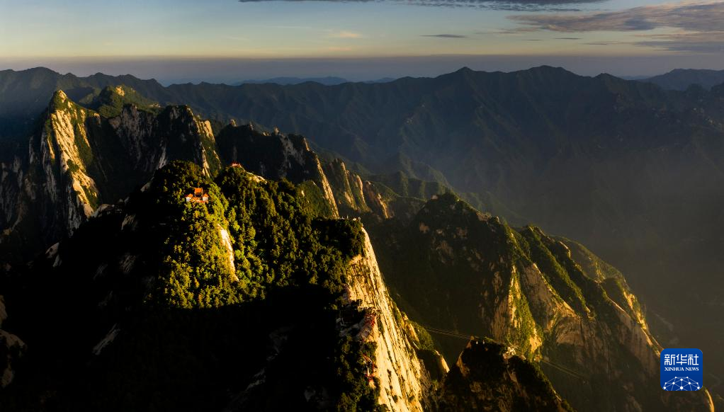 雨后初霁,位于陕西省华阴市的西岳华山在晚霞映照下,风光壮美。新华社记者 陶明 摄
