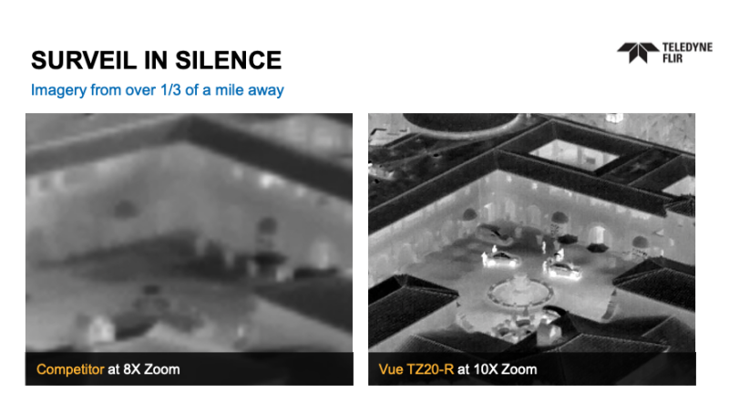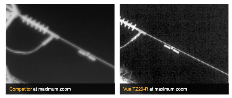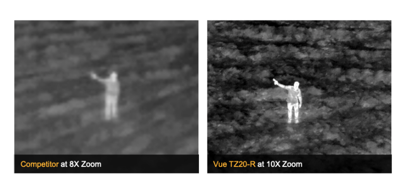 当前工业无人机有效载荷面临的挑战之一是在保持清晰图像的同时进行缩放的能力相对有限。由于尺寸、重量、成本和技术复杂性的组合,现有的工业无人机有效载荷使用具有纯数字变焦的热像仪,本质上只是放大相同的像素,使变焦图像变得模糊且难以阅读。这种限制要求无人机操作员要么飞得更靠近资产以获得清晰的图像,要么尝试翻译模糊的图像,从而使资产处于危险之中,增加误报的可能性,在公共安全任务中以声音宣布无人机的存在,以及其他并发症. 这些是 Teledyne FLIR 推出Vue® TZ20-R 的一些关键原因。