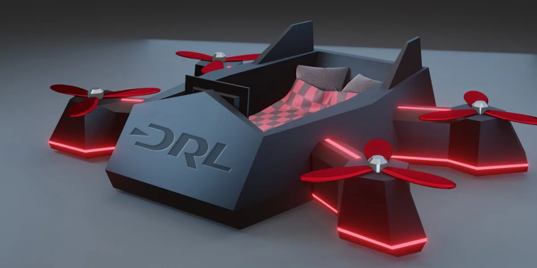 红色LED灯围绕着床以及旋转的螺旋桨枕头,这些枕头是用高密度泡沫制成的。你还会得到第一人称视角(FPV)无人机护目镜形状的睡眠面罩,并可选择在框架末端添加一个电视支架,这样你就可以在无人机床上舒适地观看DRL整个赛季。