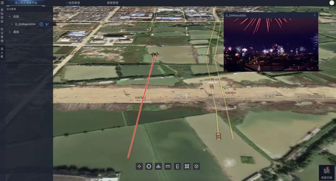 巡查方案主要是通过「无人机搭载双光相机」和「喊话器」巡查城市烟花爆竹燃放行为,通过喊话器远程劝阻驱赶燃放人群,且实时直播,这样就能在第一时间发现问题并进行处理。
