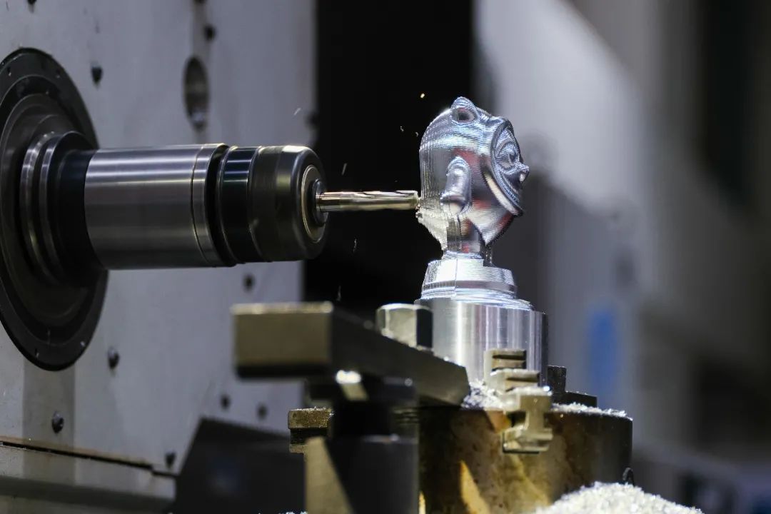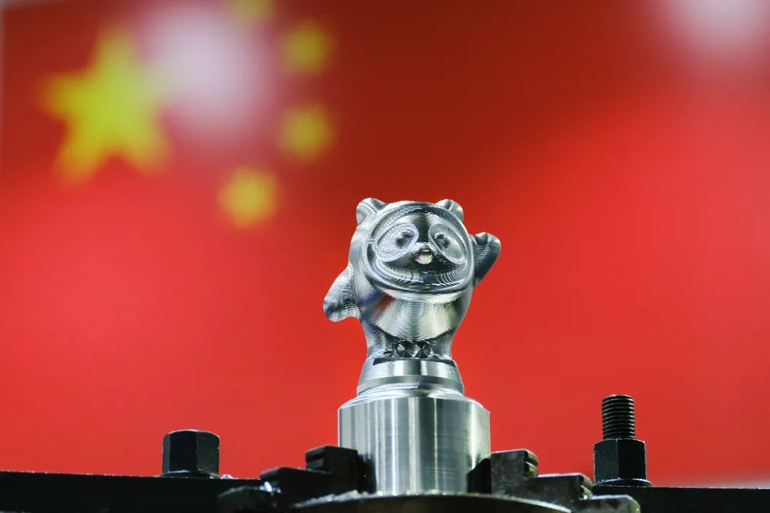 这个出自王刚劳模创新工作室的“冰墩墩”使用铝合金加工而成。在加工阶段,由通用的三坐标卧式转台数控铣削设备独立加工,前后共计转换6个工位、运行23个程序段,所有细节处均使用小直径铣刀行切处理到位,真正将航空精准制造理念深刻融入其中。