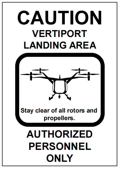 控制垂直运输通道,保持作业区域远离人员、动物、设备、碎片和车辆,对于安全和安保非常重要,例如在垂直起降飞机作业区周围以围栏或墙的形式在安全区外、进近/离港面8:1标高以下架设安全屏障;在航站楼区域建立多个垂直起降停车位或位置,为垂直起降服务;在所有垂直机场点显示警告标志。