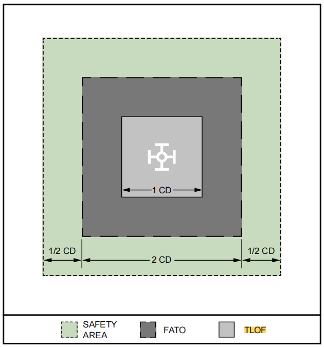 安全区 是围绕着FATO而定义的区域,目的是为了减少垂直起降飞机在无意中偏离FATO而受到损害的风险。
