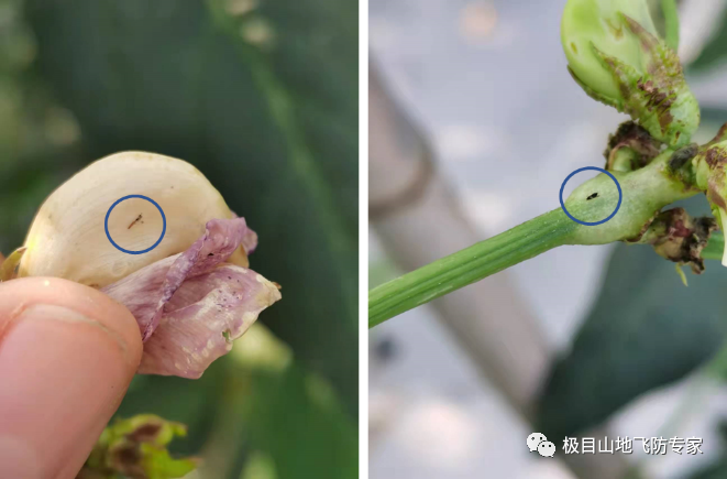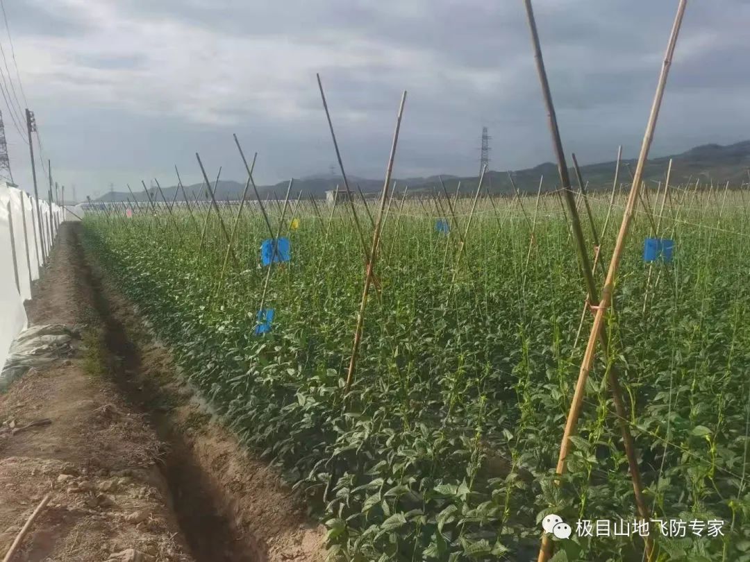 因蓟马善于弹跳飞跃,且世代重叠抗性强,建议豇豆种植户一方面可选用几种农药轮回使用,搭配生物药剂和物理防治(沾虫板),另一方面采用先进的植保无人机施药防治豇豆蓟马,由于蓟马喜阴,白天躲在花里,传统人工打药效果不甚理想,再结合无人机夜航模式,在提升防治效率同时,防治效果十分显著。