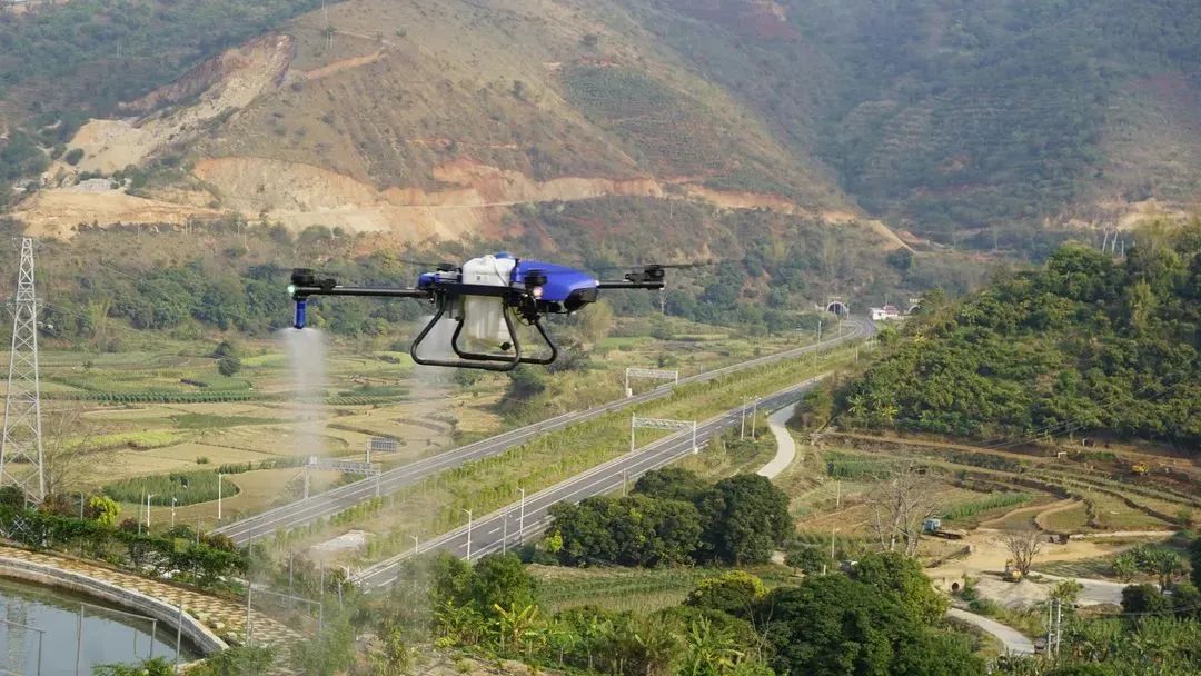极目新款智能植保无人机专门为丘陵山地的田间地头农作物喷洒农药而设计,适用于平地、山丘、丘陵、洼地等复杂地形,可以对小麦、大豆、水稻、玉米、高粱、甘蔗、果树、园林等作物遥控低空飞行施药。无人机还能够快速响应、自主避障,以及根据农作物长势调节喷头出水量。