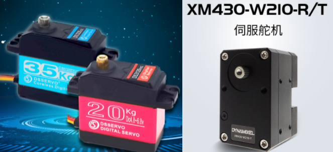 舵机主要是由外壳、驱动板 、直流有刷电机、减速器与位置检测元件所构成。舵机自带减速组且通常减速比比较高,所提供的力矩相对较大,但响应速度慢,控制精度低。高端舵机[1]内部控制板包含电流采样,可提供电流模式。
