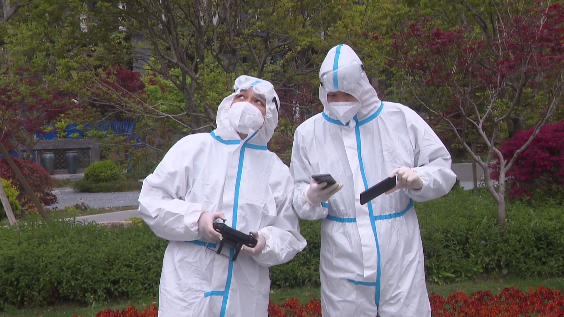 在河南南路中华路附近记者看到,两名消防救援队员正在操纵无人飞机对这一带居民区进行巡视宣传。